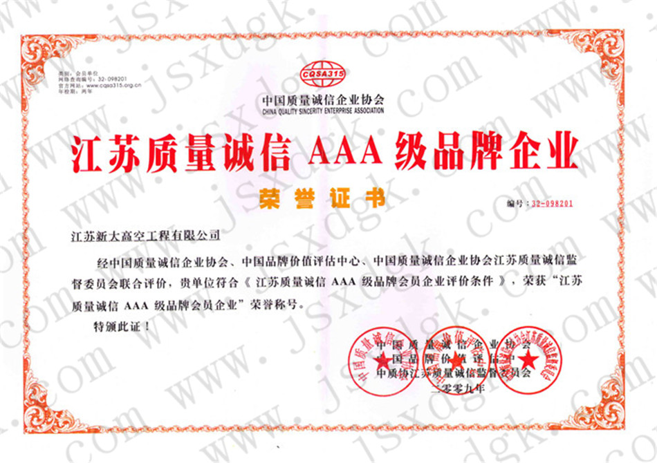 3A質(zhì)量誠(chéng)信證書